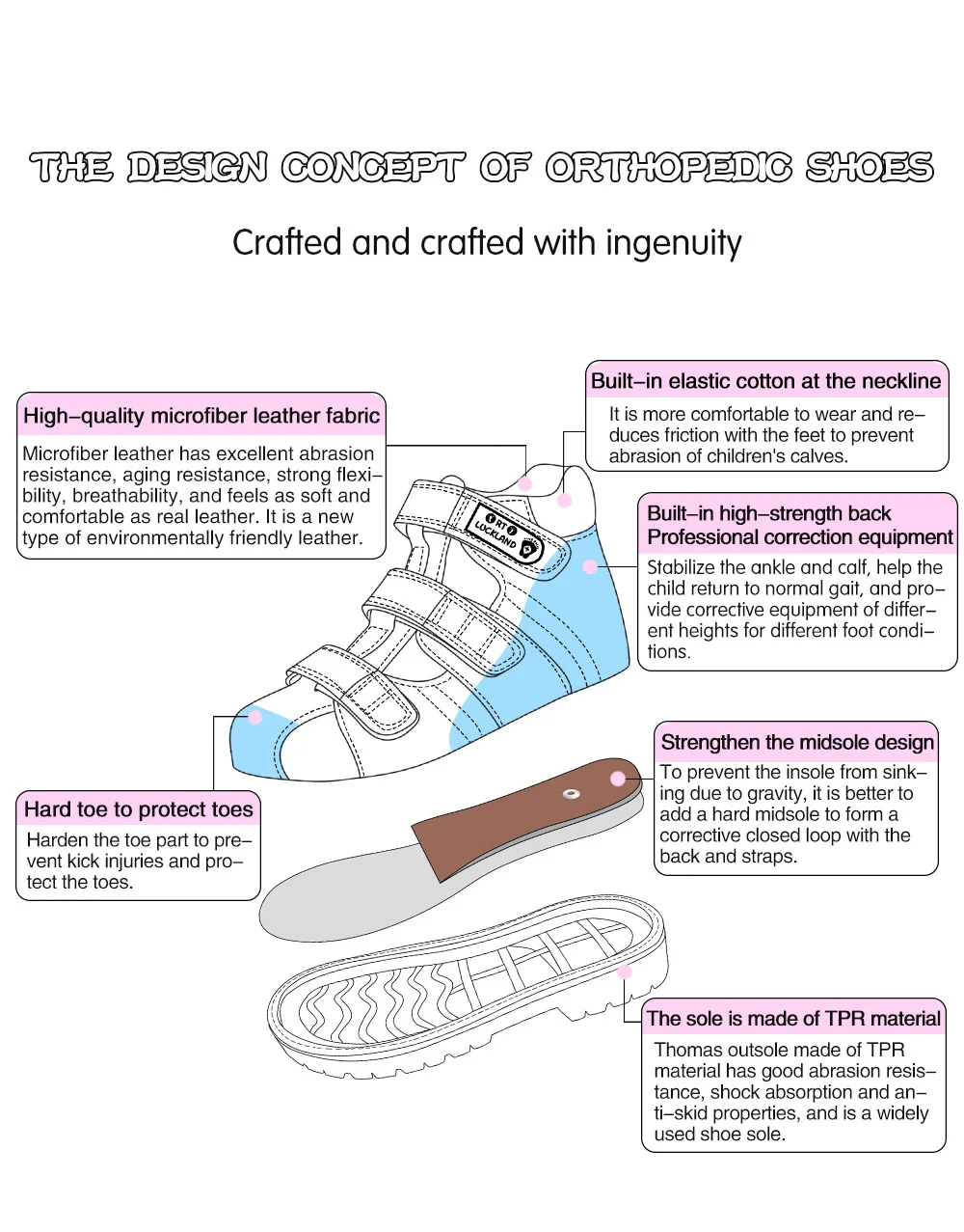 أحذية تقويم العظام مهمة جدا للخطوات الأولى للطفل ، فهي تثبت القدم ، وتزيد من منطقة دعم القدم وتعيد توزيعه